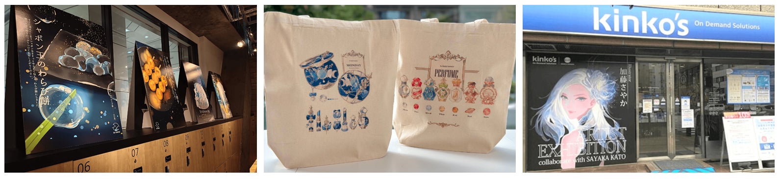 当社は、オンデマンドプリントサービスを提供するキンコーズ店舗とコワーキングスペースの「ツクル・ワーク新宿センタービル店」(以下、ツクル)を運営しています。旗艦店である渋谷店とツクルでは、かねてから、当社の扱うオンデマンドプリントで製作した作品展示やフォトブースなどの展開に加え、オリジナルのグッズ制作・販売などを行い好評を得てきました。この度、この2拠点に栄店(名古屋市)と南森町店(大阪市)を加えた4拠点から、クリエイターが個展を開きたい店舗を選んで展示とグッズ販売ができる「キンコーズ・ギャラリー」サービスの提供を開始しました。これにより、参加アーティストには展示を通じた店舗利用者との偶発的な出会いの場を提供します。