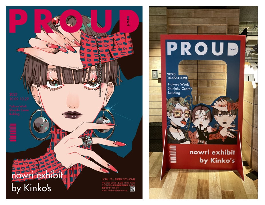 コラボレーション企画展『PROUD』のテーマは「ファッション雑誌」。時代を映す鏡のように、いつの時代も女性たちは美しく一人一人の個性が、ファッション雑誌というメディアを通じ表現されてきました。『PROUD』展では、その時代を生きる女性を、強く美しく描くイラストレーター「nowri」による新作6点描きおろし作品のパネル展示をはじめ、雑誌の表紙に入り込んだような撮影ができるフォトスポットが登場します。そして、会場となるツクルとECサイト「kinko’s fab」で、『PROUD』展オリジナルグッズを販売します。