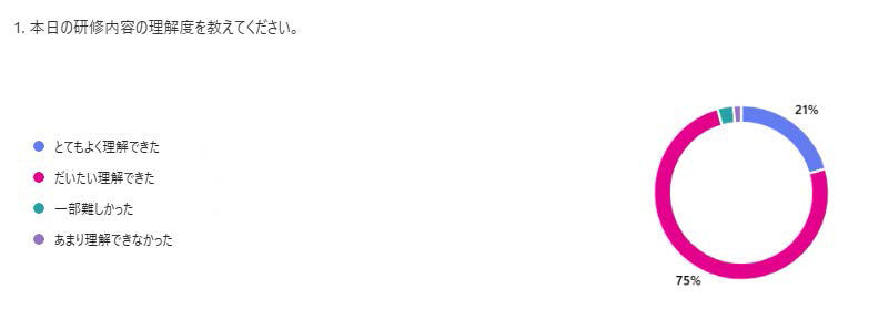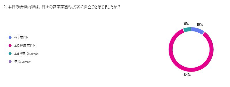 アンケートでは、参加した店長や営業担当者の95.5%が「理解できた」、94.1%が「実務に役立つ」と回答。さらに90%が「お客様への提案に活用できそう」と高い意欲を示しています。