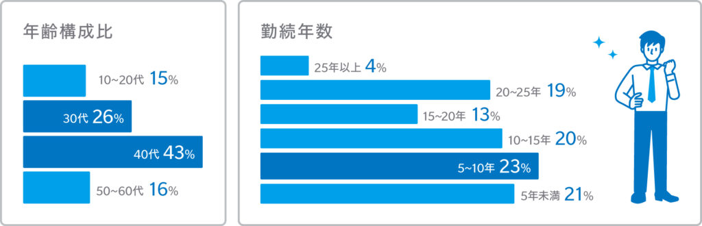 気になる会社の雰囲気や組織構成を数字でご紹介します!