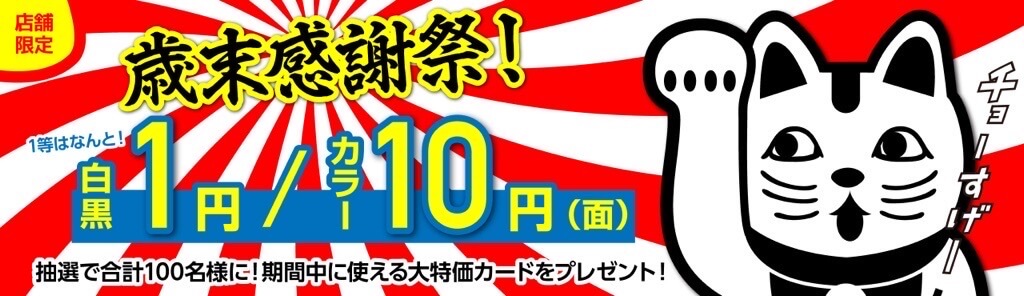 12月28日(水)~12月31日(土)の期間中、限定5店舗にてセルフコピーが大特価で使えるカードをプレゼントします。