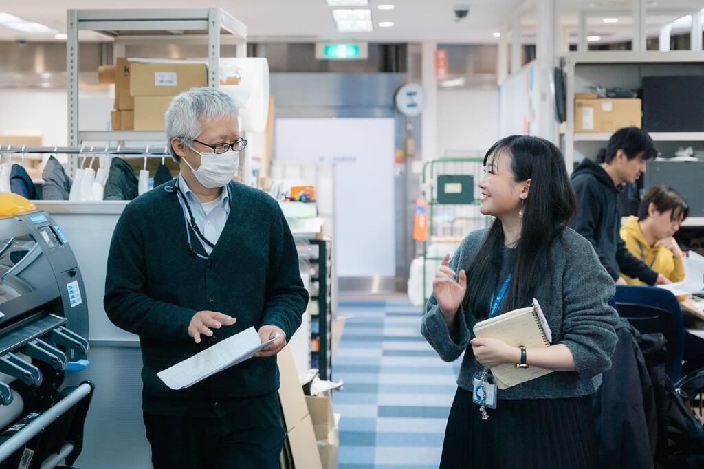 『キンコーズに愛着がある』とお話してくださる堀さんですが、自分の業務はそんな愛着や想いが強すぎてもいけない部署であり、想いと頭は切り離している、と。しかしながら、働く様子を見ているとなかなか見せない表情に、一緒に働くメンバーへの信頼や、キンコーズラブな堀さんがいらっしゃいました!