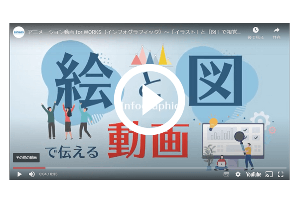 | アニメーション動画 for WORKS 納期目安:1ヵ月以内 動画の長さ:30秒程度 料金目安:99,000円 |