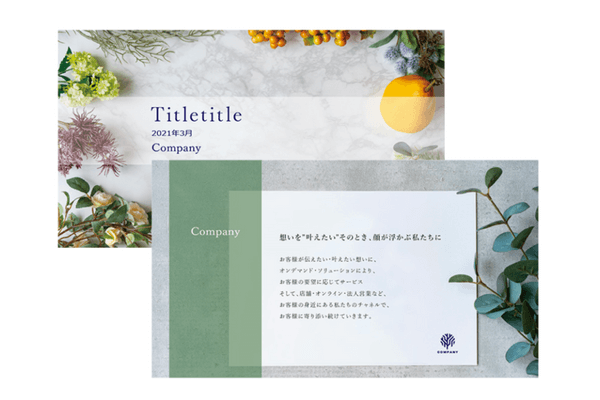 企業・商品イメージに合ったテンプレートを使用することでブランディングにつながります。テンプレートを変えるだけでも既存の資料から大きく印象がアップします。